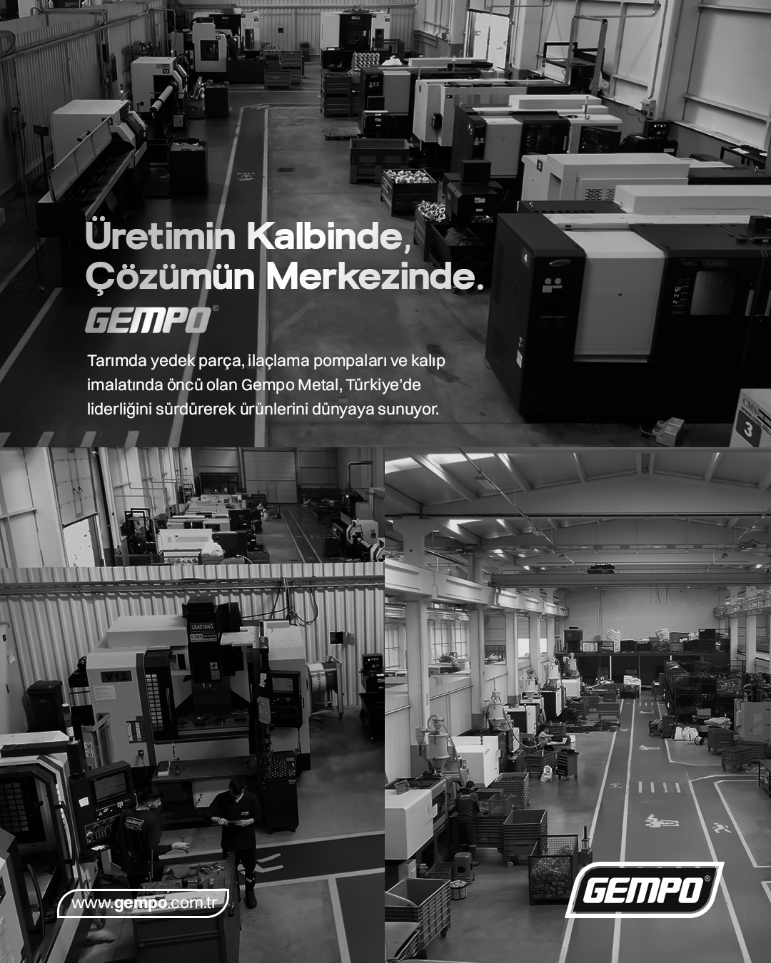 Gempo Metal Sanayi Tic. A.Ş tarım sektöründe kazanmış olduğu nitelik ve deneyimi, en başarılı şekilde geliştirerek müşterilerine sunmaktadır. 2005 yılında başlayan yolculuğunda tarım sektörüne yedek parça üretim hizmeti vermektedir. Gempo Metal kısa süre içerisinde birçok ürün geliştirerek sektörde saygın firmalar arasında yer alarak isminden bahsettirmiştir. Gempo Metal günümüzde tarım sektörünün; yedek parça, ilaçlama pompaları, plastik grubu ve kalıp imalatı ihtiyaçlarını karşılamaktadır. Ayrıca Gempo Metal yakın zamanda dünya tarımcılık pazarını kendine hedef pazar olarak seçmiş ve çeşitli yatırımlarla ürünlerini yurtdışı pazarına sunmuştur. Kısaca; 2005 yılından bu yana yapılan çalışmalar doğrultusunda kendini geliştiren, her zaman daha ileriye giden, teknolojiyle beraber hareket edebilen bir şirket olarak eksiksiz bir hizmet vermektedir.