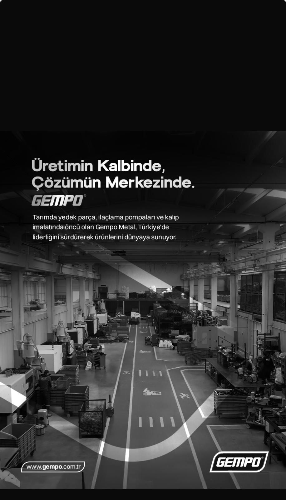 İnsanlığın en temel ihtiyaçlarından olan beslenme ihtiyacını karşılayan ana unsur kuşkusuz ki gıda ürünleridir. Dolayısıyla dünya var oldukça gıda üretimi olacak ve her geçen gün daha verimli bir şekilde artacaktır. Bununla birlikte artan dünya nüfusu için gıda sektörünün özellikle tarım ürünleri üretim sektörünün profesyonel olması zorunluluktur. Gempo Metal Sanayi Tic. A.Ş. olarak biz de bu önemli üretim zincirindeki yerimizi alarak daha iyi ne yapabiliriz düşüncesiyle her geçen gün üretim potansiyelimizi ve kalitemizi artırarak çalışmaktayız. Ülkemizin her yerine hizmet sunmakla birlikte uluslararası pazara da hizmet sunmakta ve birçok ülkeye ürün göndermekteyiz. Buna bağlı olarak ulusal bir marka olduğumuz kadar uluslararası bir tarım markası olmayı hedeflemekteyiz.